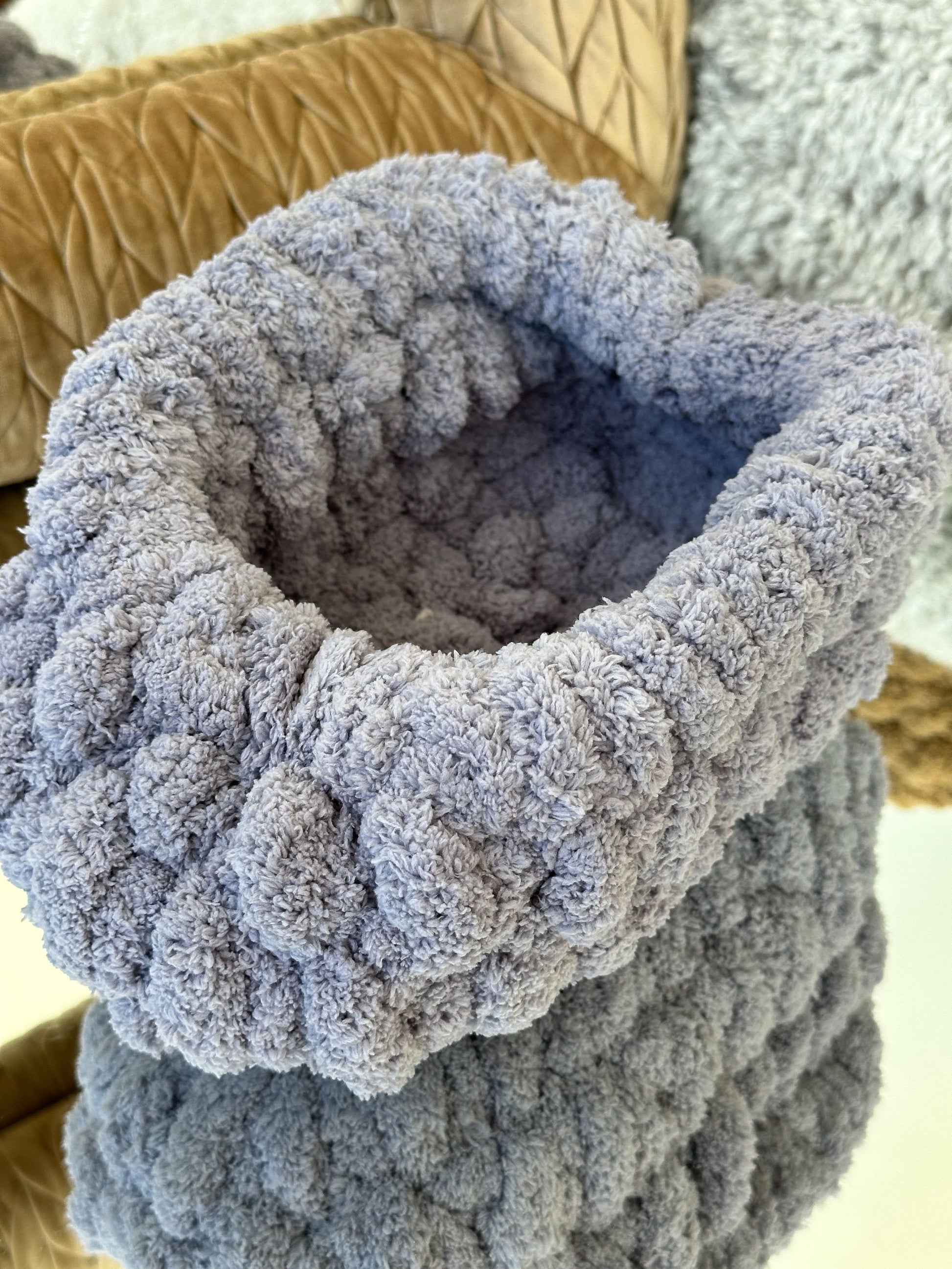 Hilo de chenille reciclado, suave y cálido.