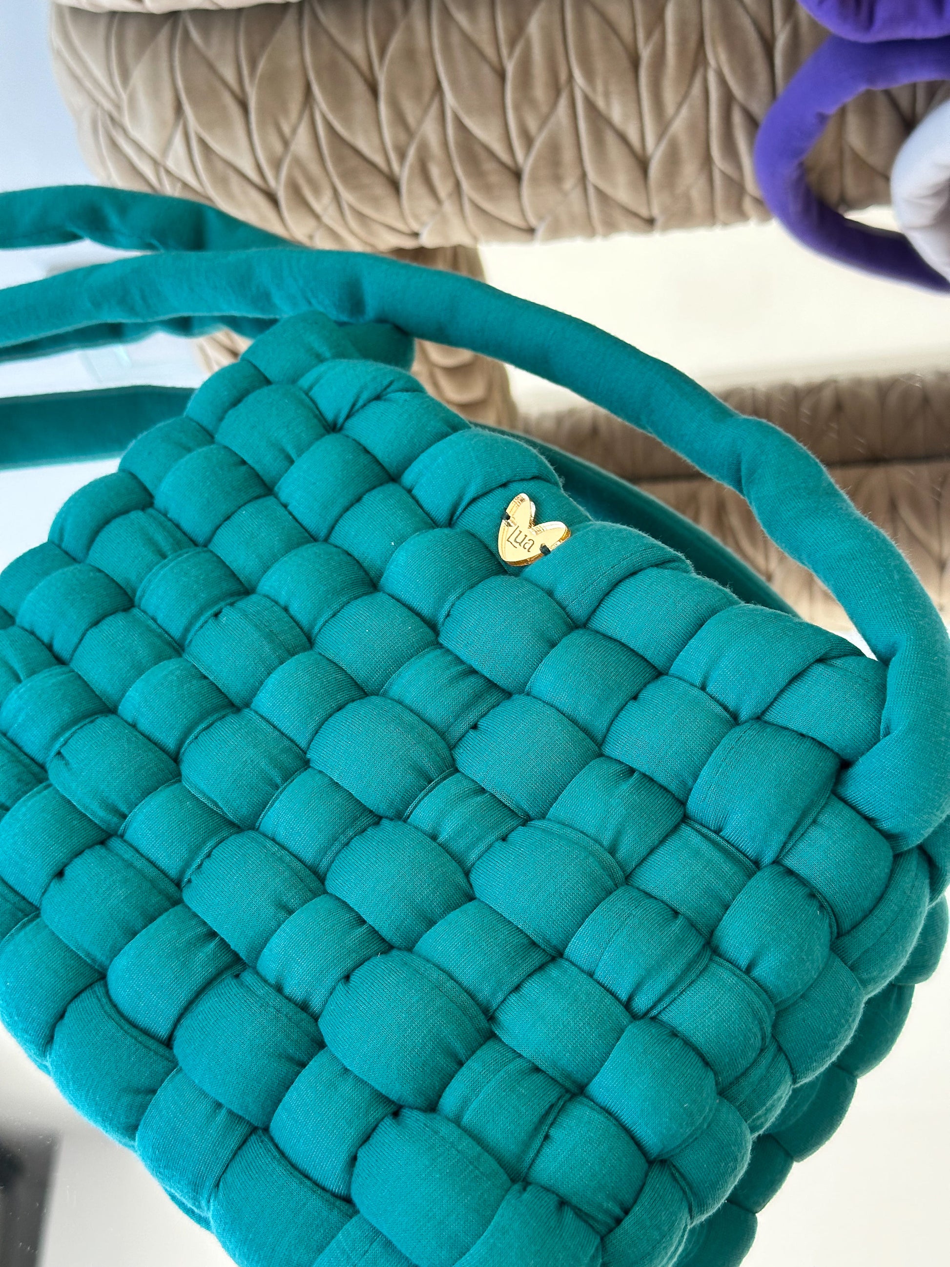 Cada bolso está tejido a mano con hilos gruesos XL, que crean un tejido firme y con cuerpo, capaz de mantener su forma y aportar un toque artesanal inconfundible.