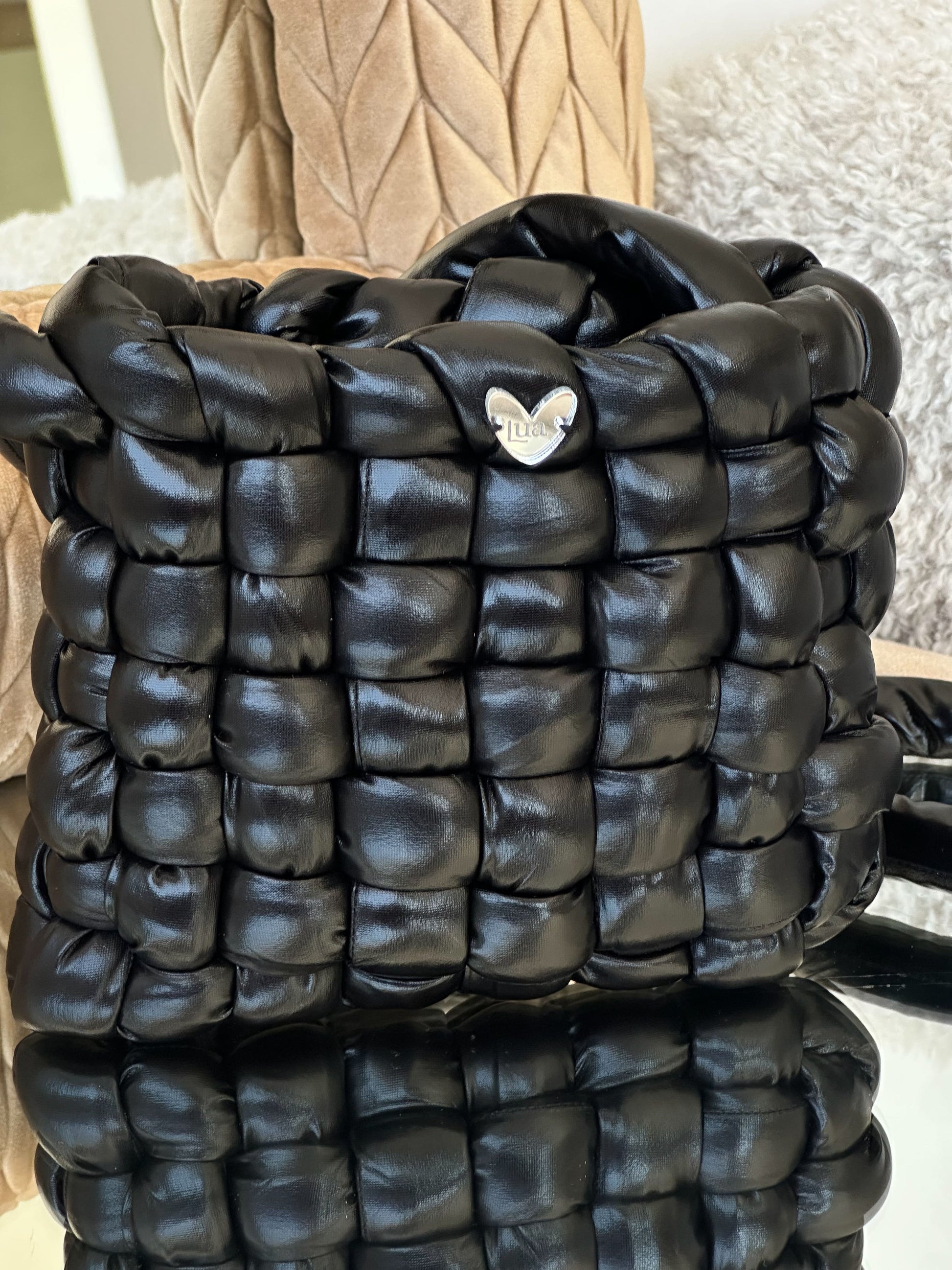 Su silueta limpia y su textura entrelazada la convierten en un bolso versátil y elegante, ideal tanto para el día a día como para darle un aire especial a tus looks de invierno.